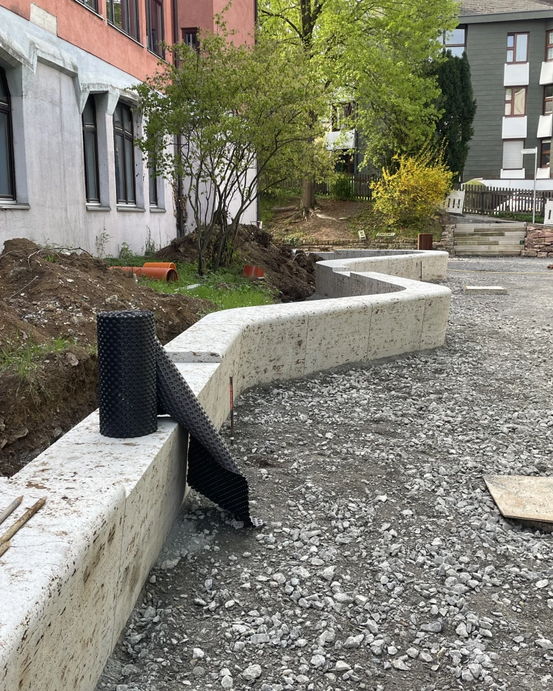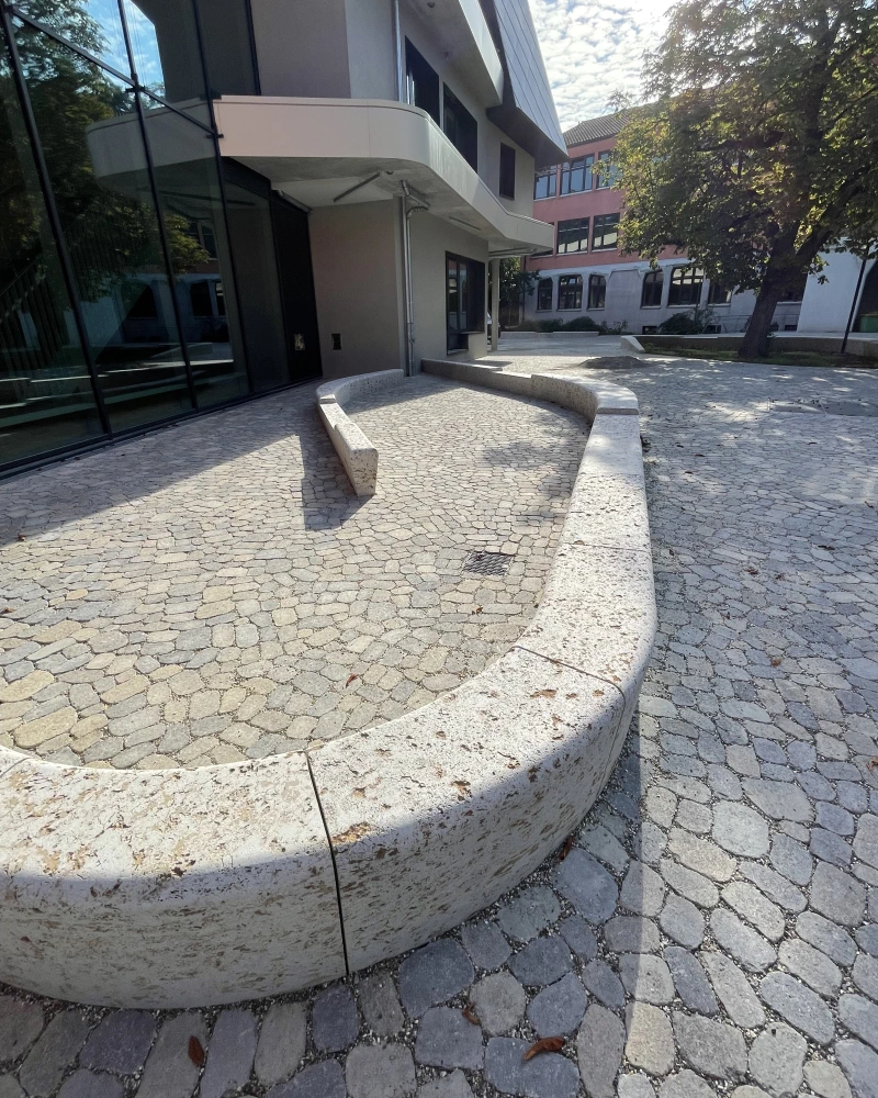 Gesägte und sandgestrahlte Sitz- und Einfassungselemente aus Muschelkalk schmücken zukünftig den Schulhof der Freien Waldorfschule in Stuttgart. Jedes Werkstück hat eine eigene Form und Abmessung und ist somit ein Einzelstück. Von diesen sehr exklusiven, steinmetztechnisch anspruchsvollen Naturwerksteinen mit Rundungen und Radien liefern wir ca. 215 lfm und dürfen zu einem gelungenen und nachhaltigen Gesamtprojekt beitragen.